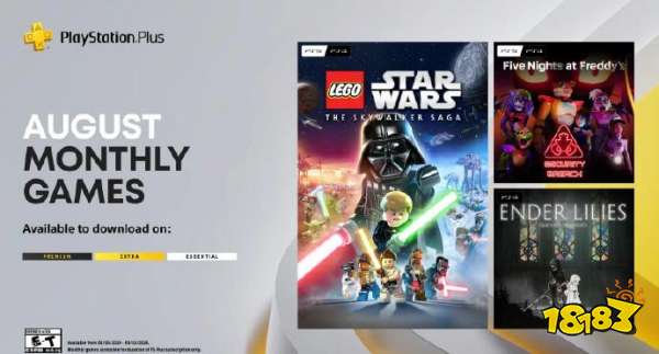 PS4/PS5《乐高星球大战:天行者传奇》;PS4/PS5《Five Nights at Freddy’s: Security Breach》;PS4《终结的百合花:骑士们的解脱》;领取时间为8月6日~9月2日 。