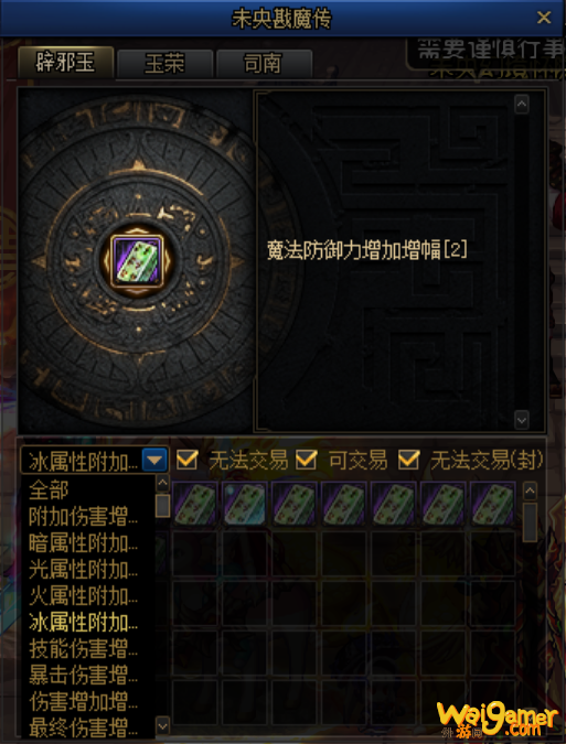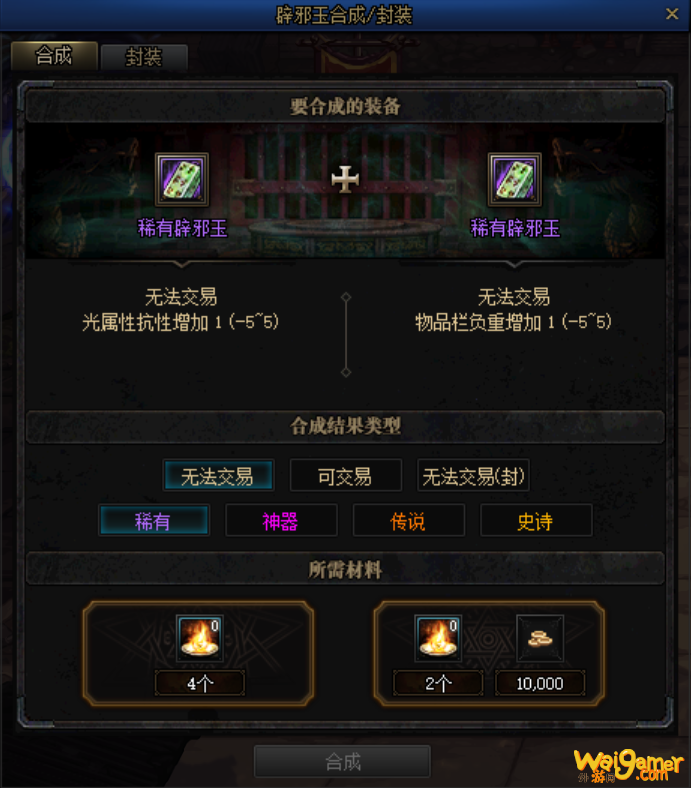 获得的避邪玉可以通关怀隐的避邪玉系统进行合成和封装,需要注意的是相同品级的合成出的是相同品级的。如果选择的是无法交易的和可交易的封装合成,那出的结果可能是随机一种。