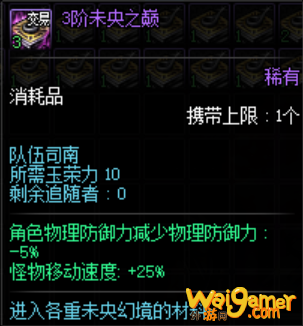 dnf未央幻境入场门票叫做司南,可以用金币购买,也可以用分解避邪玉或者玉荣获得的材料购买,但是只能购买一阶段的门票。门票是随机四个副本的门票,并且门票都是有随机的怪物属性。