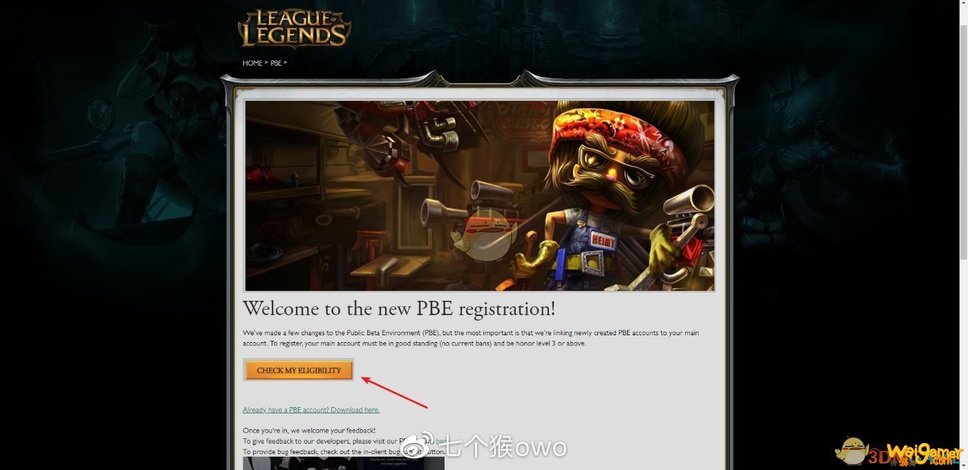 设置好之后,进入拳头PBE官方申请页面,点击【CHECK MY ELIGIBILITY】