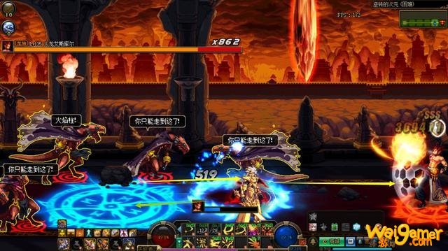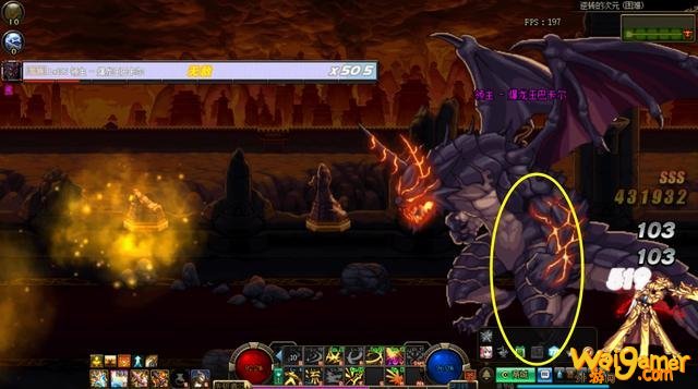 火龙防御力较高,如果没有秒掉的时候出现火炎吐息机制,左边魔法阵上有一个蓝色的光环,去把光环捡起来再运送到火龙身边就能直接破防击杀。
