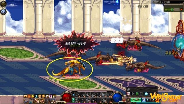 二图怪物真龙利特雷诺,难度简单,进图时身上有鬼行护盾,头上有读条提示,将护盾打破就能对本体造成伤害,难度极低。