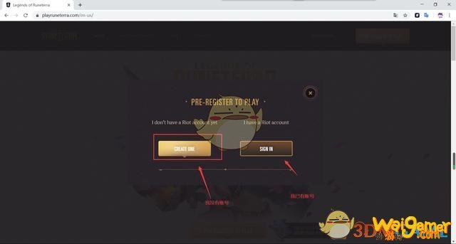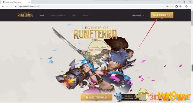 第一步:打开符文传说LOR外服官网:https://playruneterra.com/,点击右上角黄色按钮